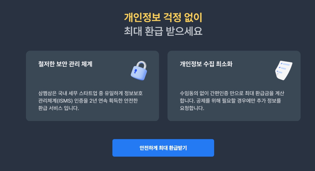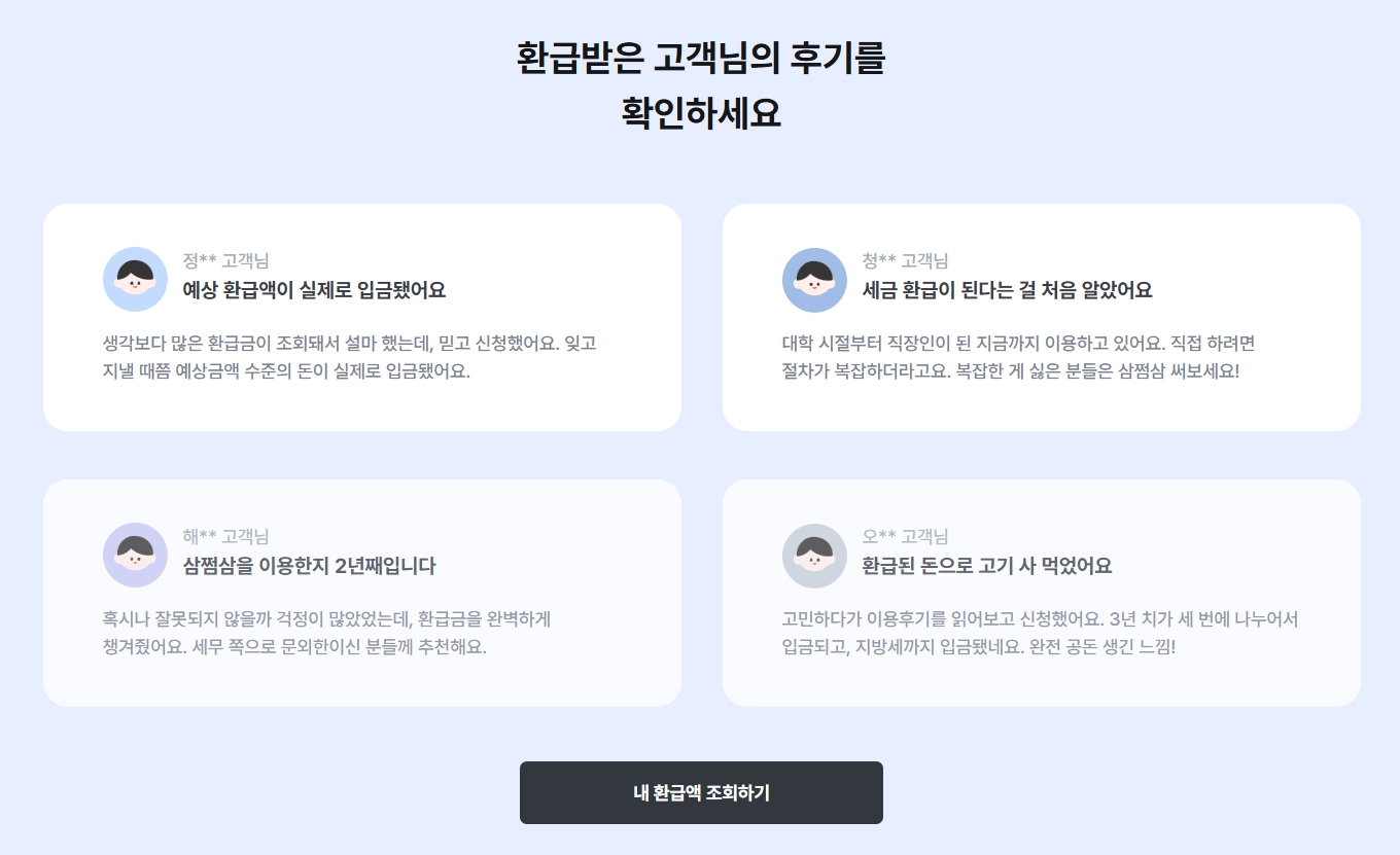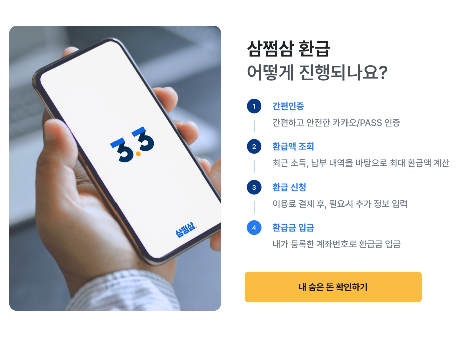 삼쩜삼은 세금 신고 대행 서비스일 뿐, 실제 환급은 국세청에서 처리합니다.