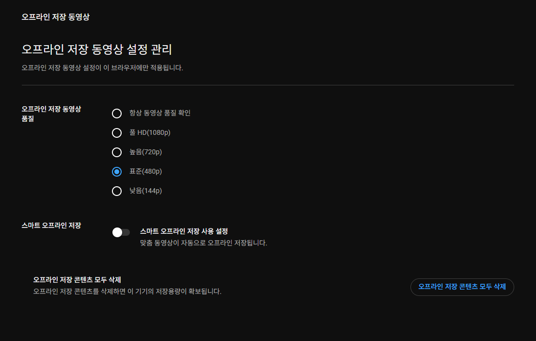 - 안드로이드: 설정 > 앱 > 유튜브 > 저장공간 > 캐시 삭제