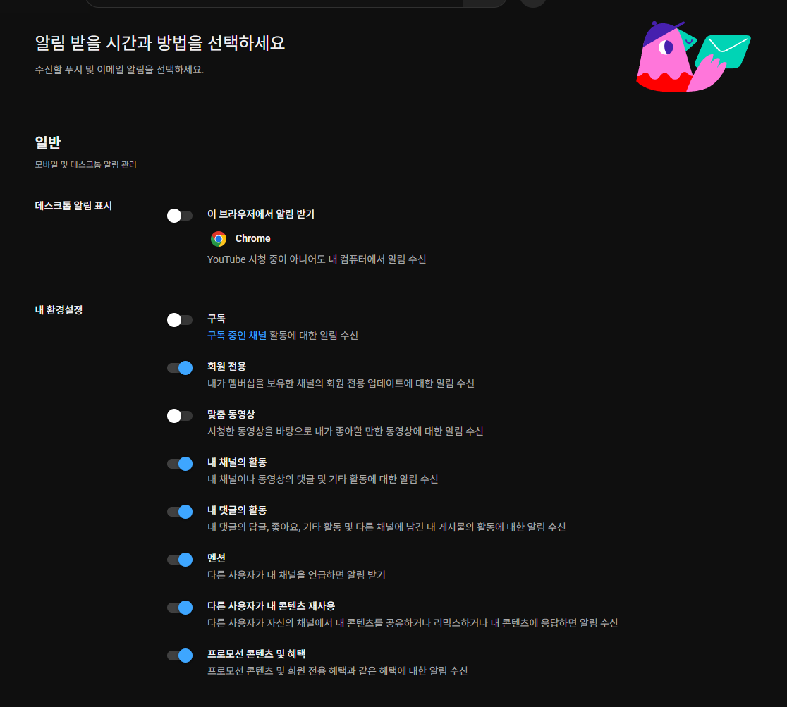 - 아동용 콘텐츠 설정: 어린이 보호를 위해 아동용으로 분류된 영상은 댓글 기능이 꺼져 있습니다.